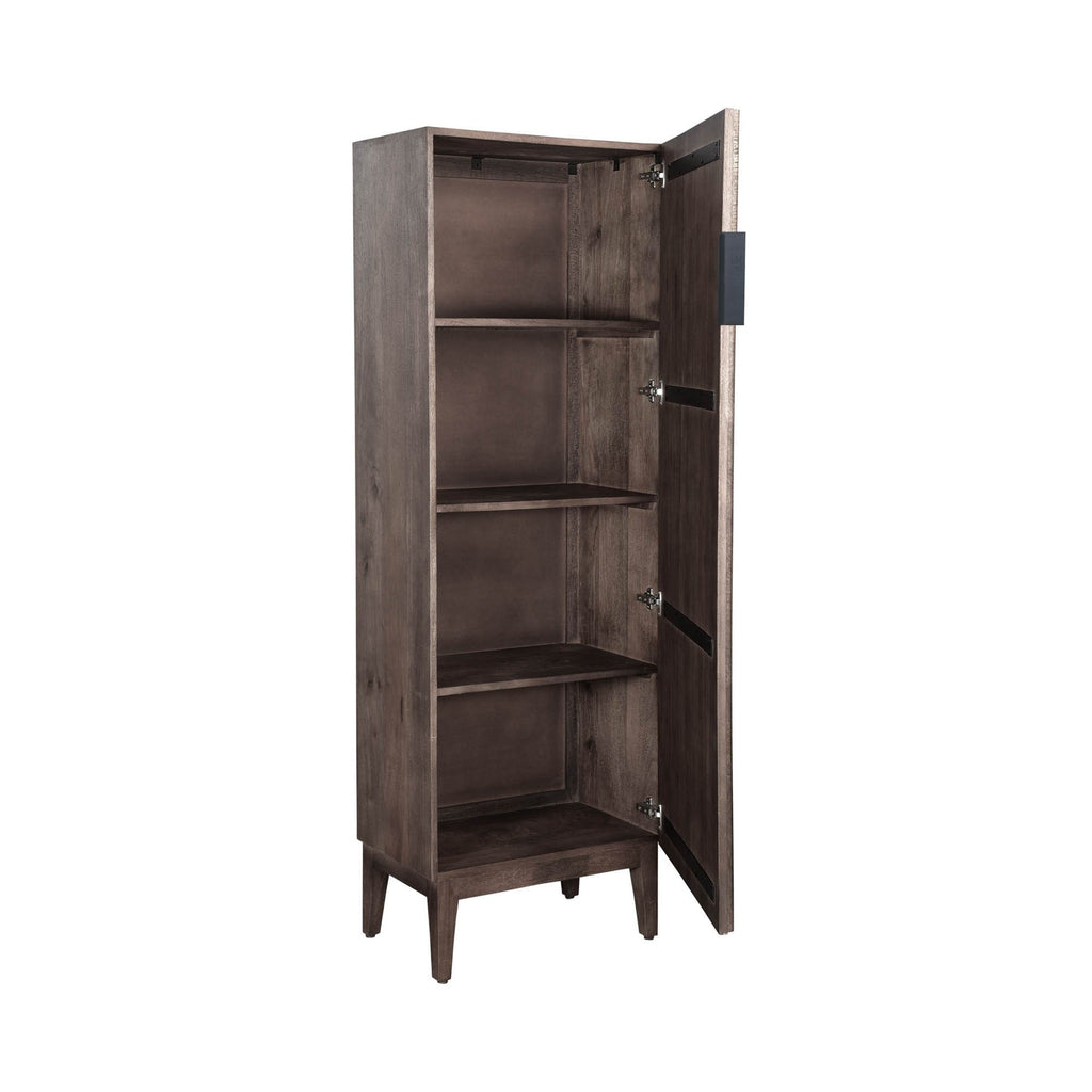 Enhance your home with the Vertical Tall Cabinet - Left Door Handle. This rustic storage piece brings the charm of summer cottages into your living space. Crafted from natural mango wood, it boasts a stunning walnut brown finish that adds a touch of modernity. The smooth-swinging door opens up to reveal ample storage space, making it a perfect blend of style and functionality.