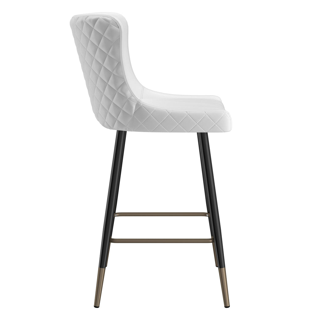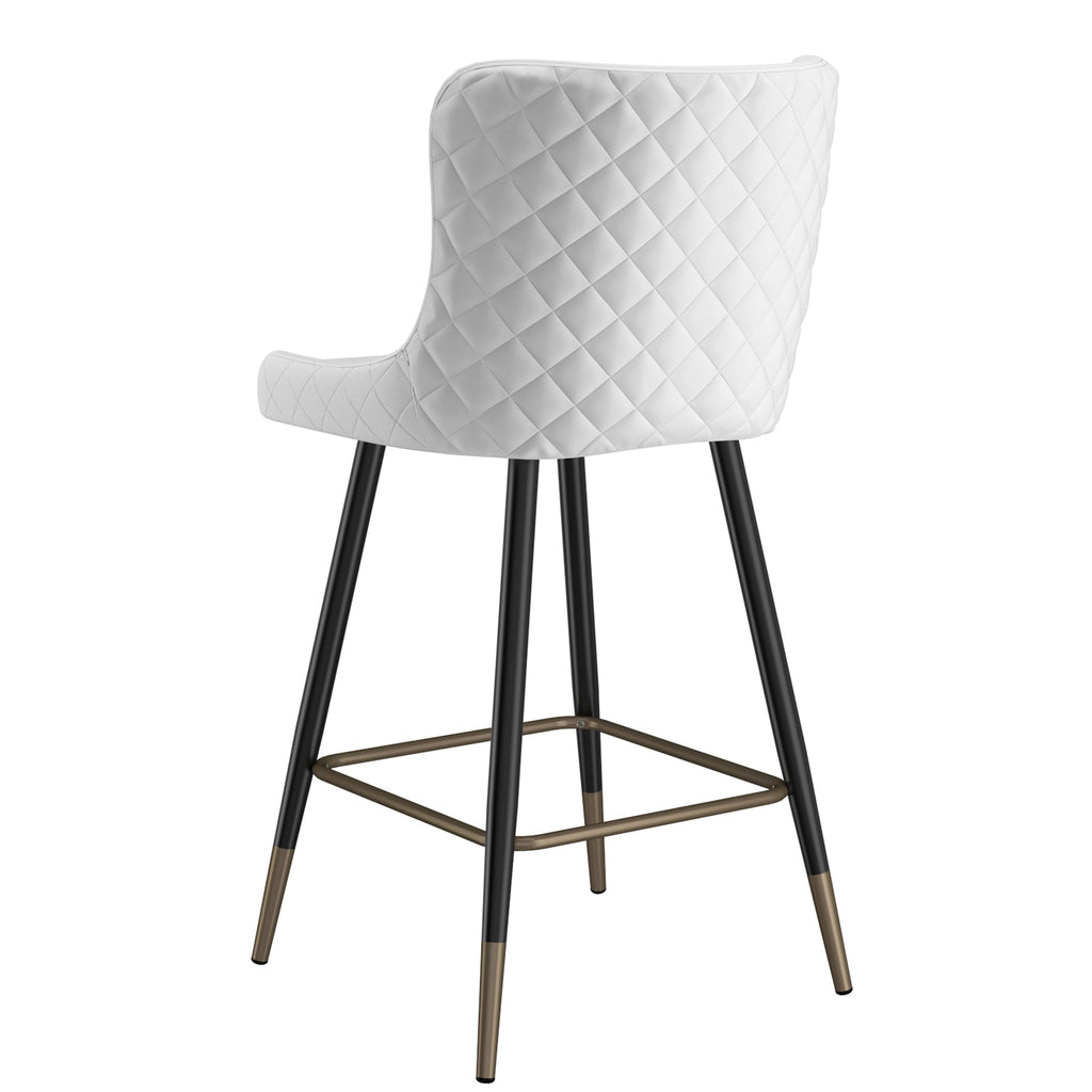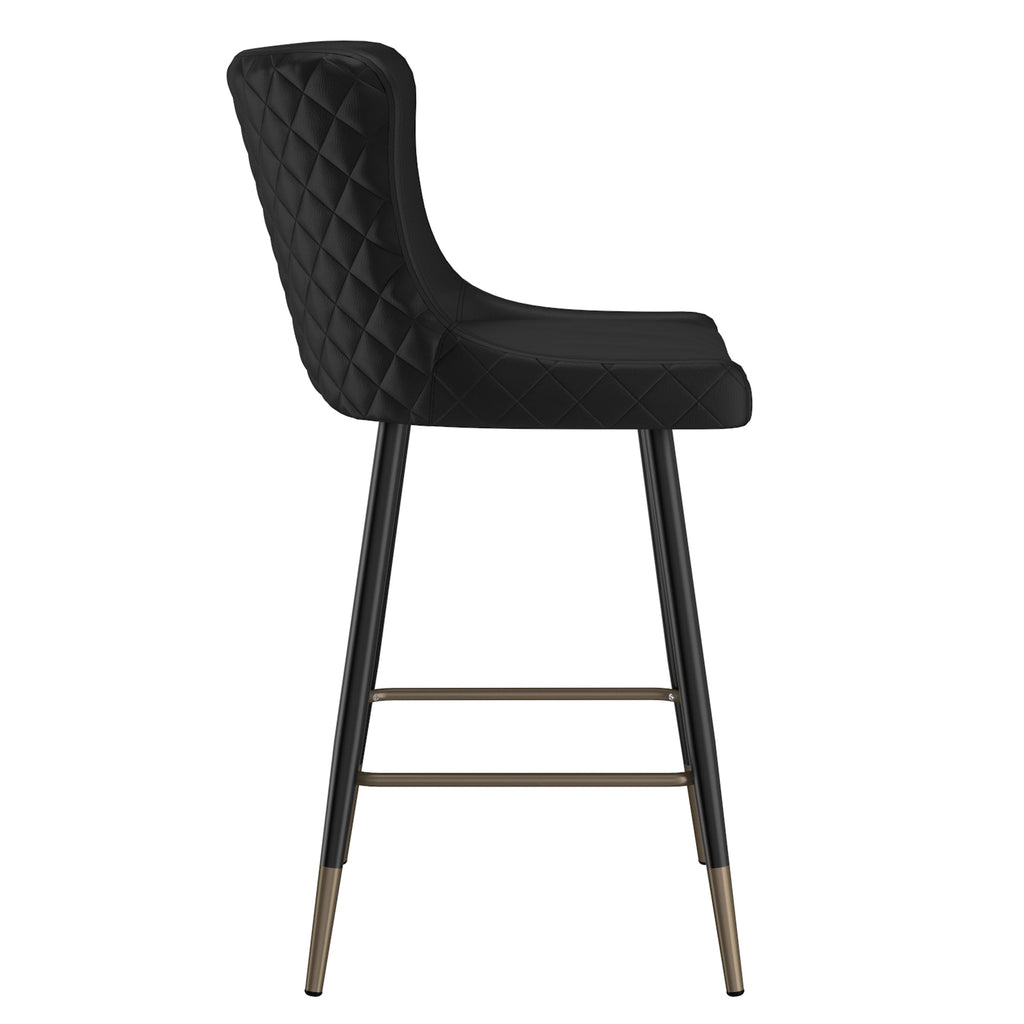 Introducing our mid-century inspired counter stool, perfect for adding a touch of style and comfort to your space. With its contoured shape and plush, diamond-patterned tufting on the back, this stool offers both support and a dose of elegance. The black metal legs with gold dipped detail not only provide sturdy support but also add a touch of sophistication. Whether you're setting up a casual kitchen or a formal basement bar, this 26" counter height stool is the perfect addition.